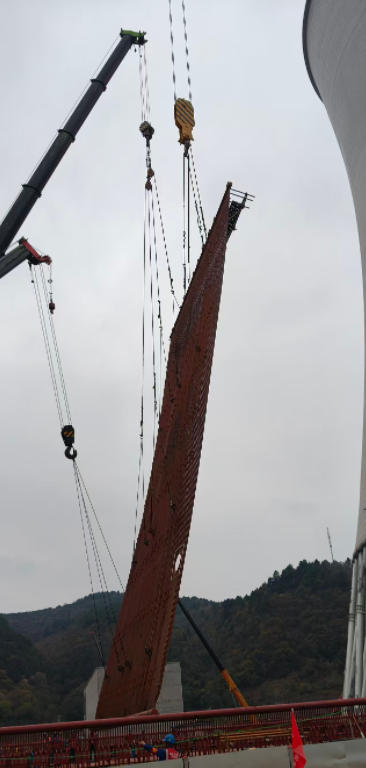 锅炉为东方锅炉厂设计生产,形式为“π”,分为炉膛和后竖井区域,后竖井由前侧包墙、侧包墙、后侧包墙及中隔墙组成“日”字形井道,其内部分别布置低温再热器、低温过热器及省煤器,根据2号锅炉施工现场的具体情况,主吊机械选用中联重科R3200-160V塔式起重机单机吊装就位。